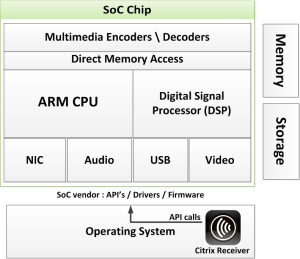 3: If the API’s are in place, Citrix Receiver will use the components inside the SoC and start offloading image processing to the DSP for example.
