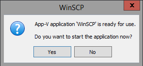 After the user clicks yes the application is launched, depending on the streaming settings of the package you may see the App-V progress bar notifying the application is getting streamed :