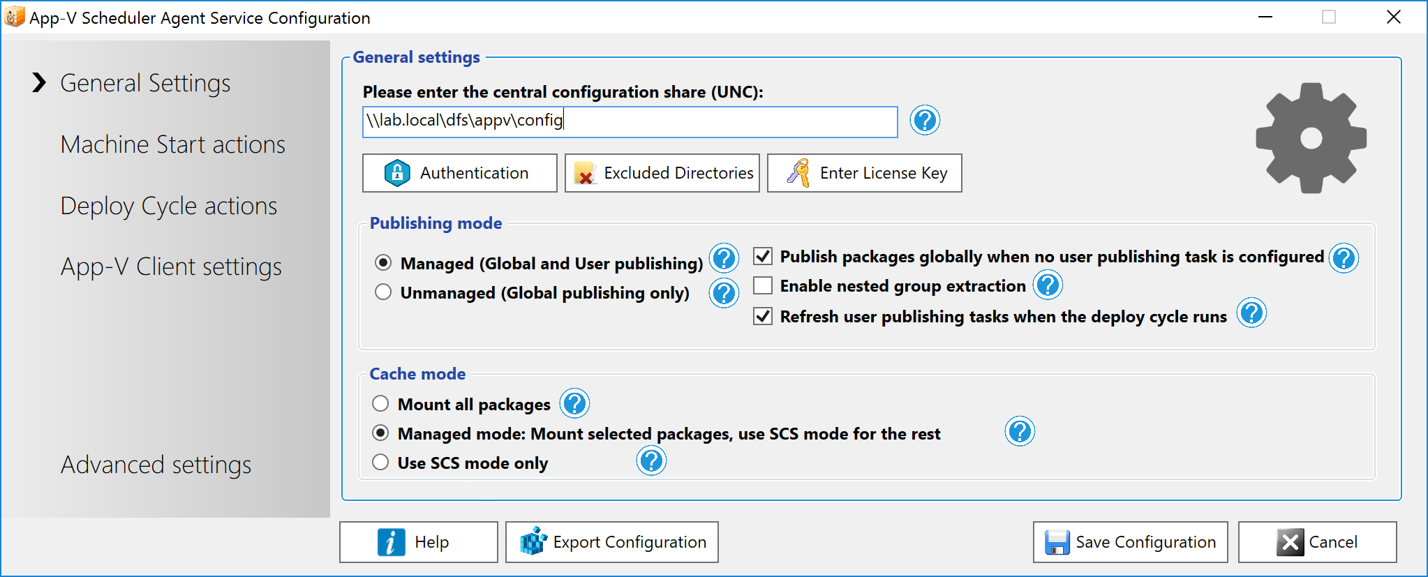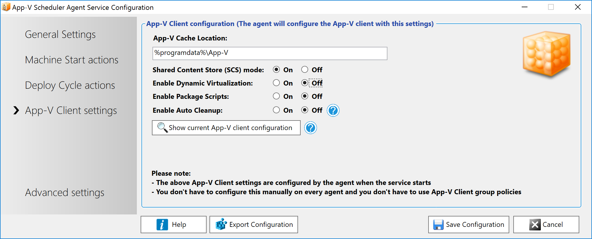 - Control all App-V client settings directly from the agent (single point of configuration)